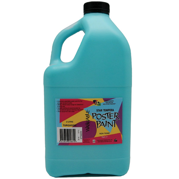 5 STAR TEMPERA POSTER PAINT WASHABLE BOTTLE 2L TURQUOISE