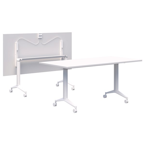 ACCENT BOOST FLIP TABLE W1500 X D750 X H745MM WHITE FRAME SNOWDRIFT NATURALE TOP