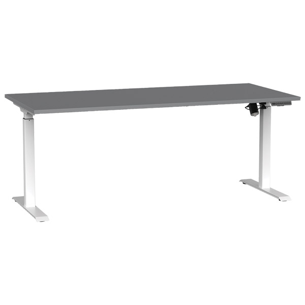 AGILE BOOST HEIGHT ADJUSTABLE SINGLE SIDED ELECTRICAL DESK W1800 X D800 X H720-1200MM WHITE FRAME SILVER TOP