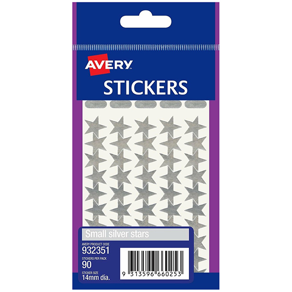 AVERY 932351 STAR STICKERS 14MM SILVER PACK 90