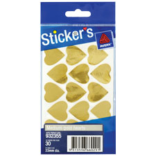 AVERY 932355 HEART STICKERS 23MM GOLD PACK 30