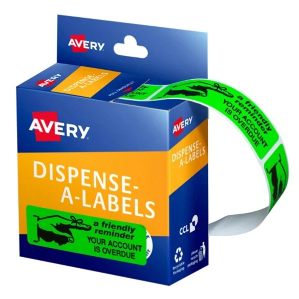 Avery printed 'Friendly Reminder' labels in a handy dispenser box.