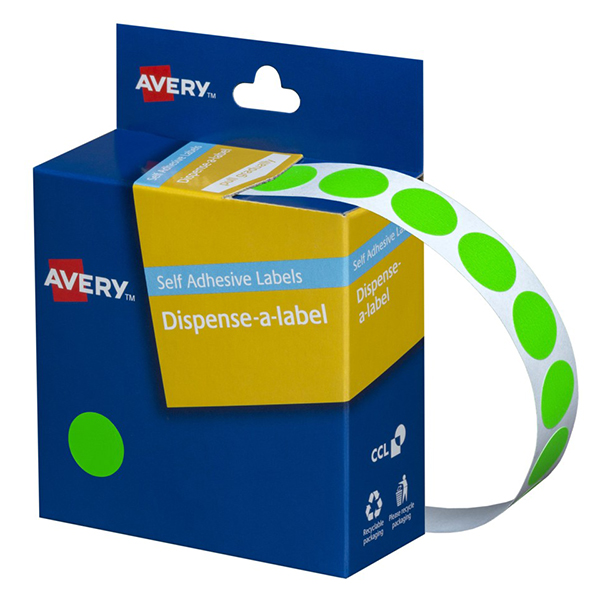 AVERY 937238 DMC14G DISPENSER SELF ADHESIVE CIRCLE LABEL DISPENSER PACK DIA 14MM GREEN BOX 1050