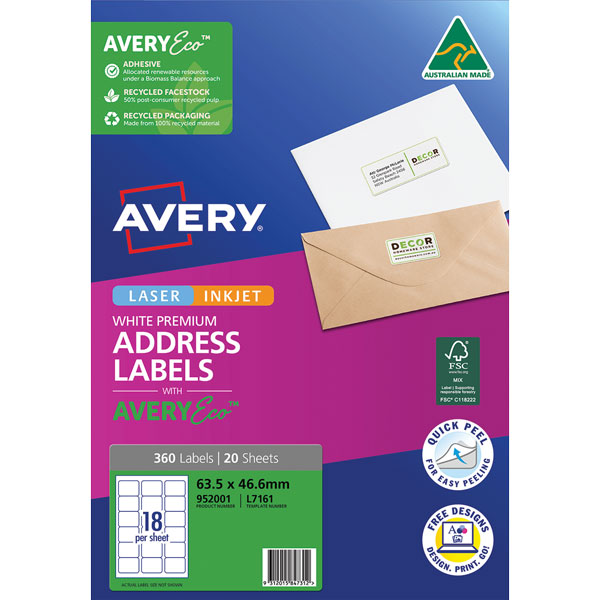 Customise your labels with our free and easy-to-use template software; Avery Design and Print - available at averyproducts.com.au/print