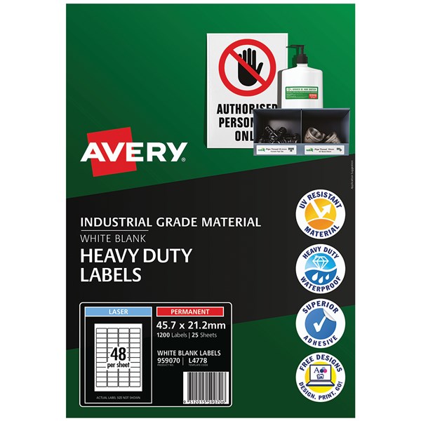 AVERY 959070 L4778 HEAVY DUTY LASER LABELS 48UP WHITE PACK 25