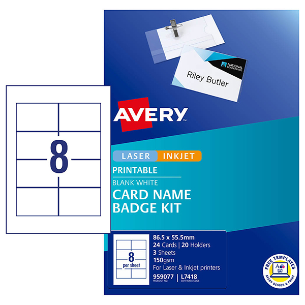 AVERY 959077 L7418K NAME BADGE KIT MICROPERFORATED 86.5 X 55.5MM WHITE