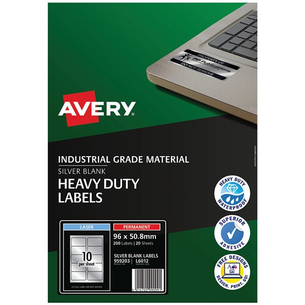 AVERY 959203 L6012 DURABLE METALLIC HEAVY DUTY LABELS SILVER 10UP PACK 20