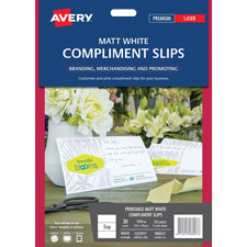AVERY 980027 C32295 COMPLIMENT CARD LASER 3UP W210 X L99MM MATT WHITE PACK 10