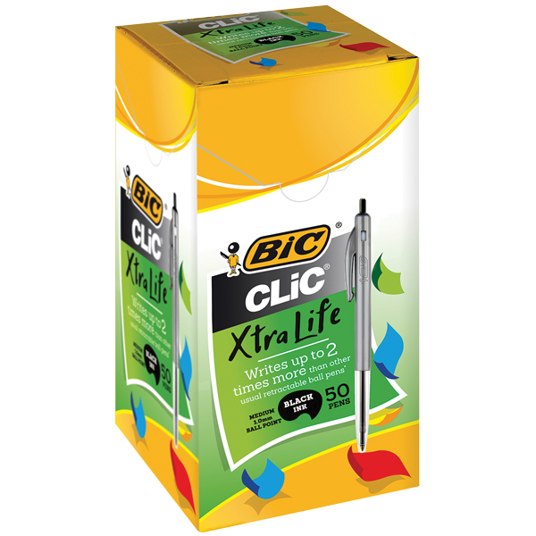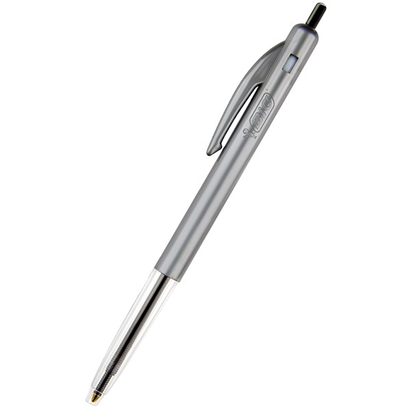 BIC CLIC MEDIUM BALLPOINT PEN RETRACTABLE SILVER BARREL 1.0MM BLACK BOX 50