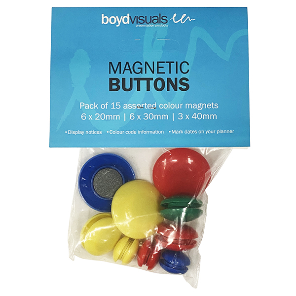 BOYD VISUAL WHITEBOARD MAGNETIC BUTTONS ASSORTED PACK 15
