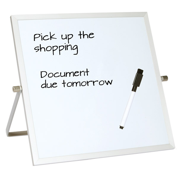 BOYD VISUALS WHITEBOARD DESKTOP DOUBLE-SIDED WITH ADJUSTABLE STAND H250 X W250MM