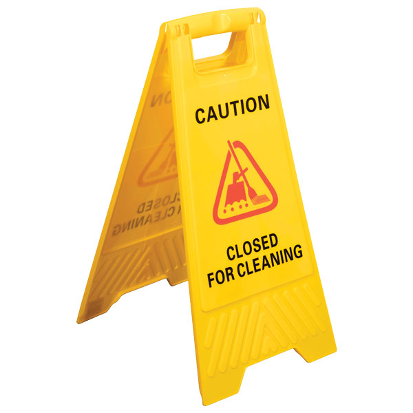 Cleanlink safety sign "Closed For Cleaning" is light weight and bright yellow drawing attention to ensure safety.