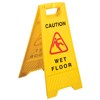 Cleanlink safety sign "Wet Floor" is a light weight flat fold A-frame in bright yellow, drawing attention to ensure safety.