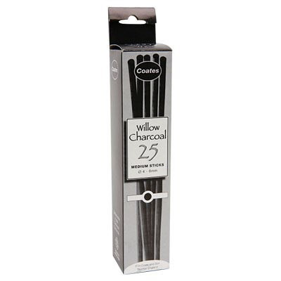 COATES WILLOW CHARCOAL STICKS MEDIUM 4-6MM BLACK BOX 25
