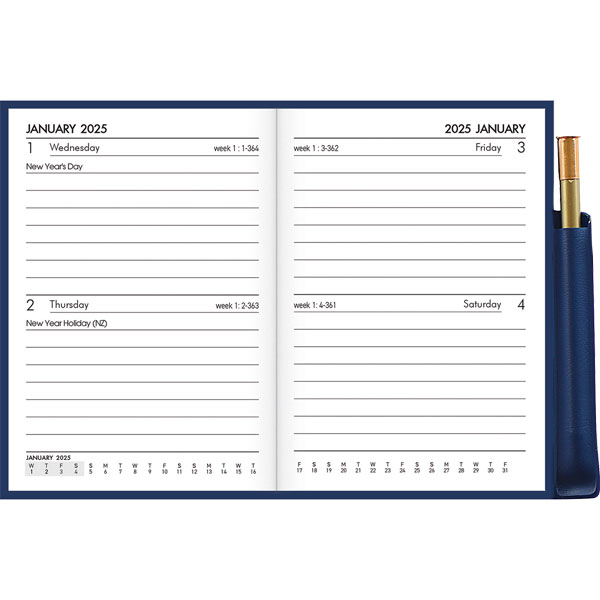 COLLINS DIARY POCKET PENCIL A72PP W74 X L105MM NAVY 2 DAYS PER PAGE PVC ODD YEAR