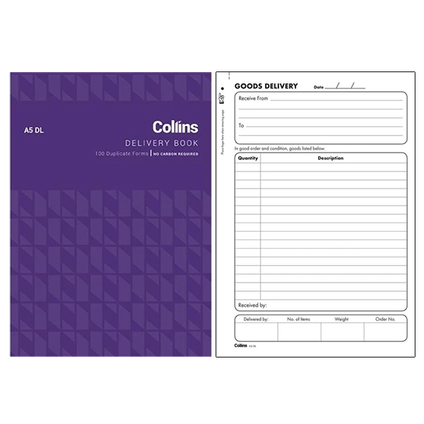 COLLINS DELIVERY BOOK 50 DL DUPLICATE NO CARBON REQUIRED A5