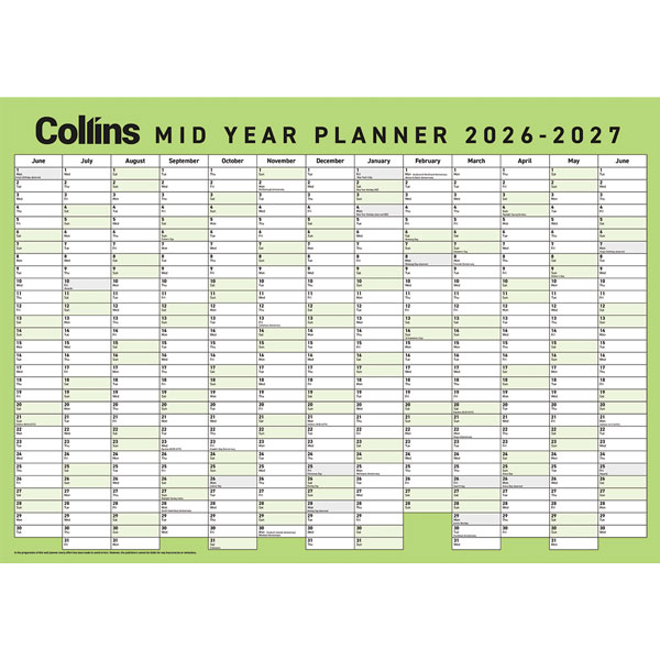 COLLINS MID YEAR WALLPLANNER LARGE 700X990MM 2026/2027