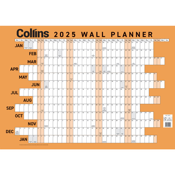Collins 13 month to view odd year wall planner.