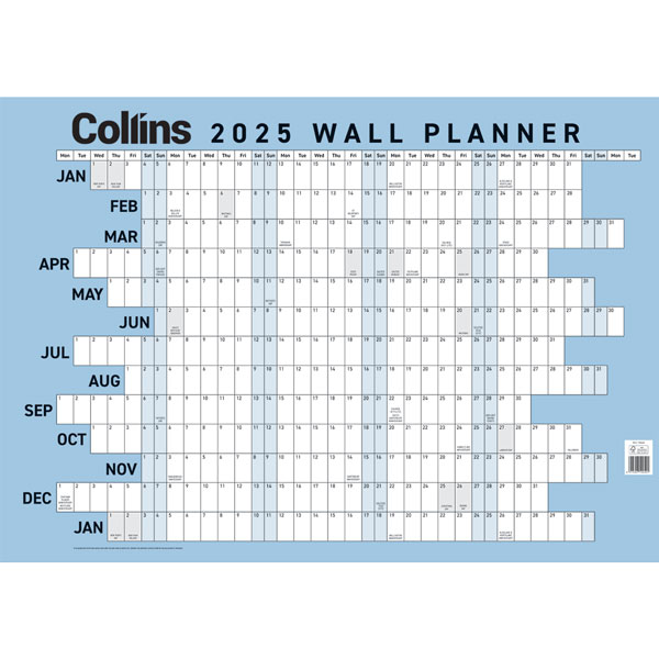 • Collins 13 month to view odd year wall planner.
