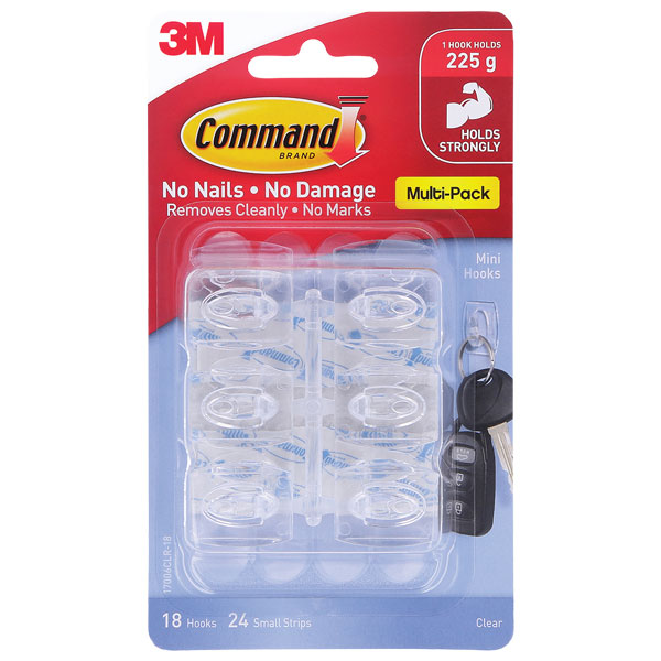 COMMAND ADHESIVE HOOK MINI CLEAR PACK 18