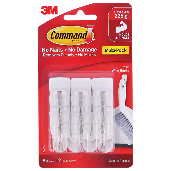 COMMAND ADHESIVE HOOK SMALL WHITE WIRE PACK 9