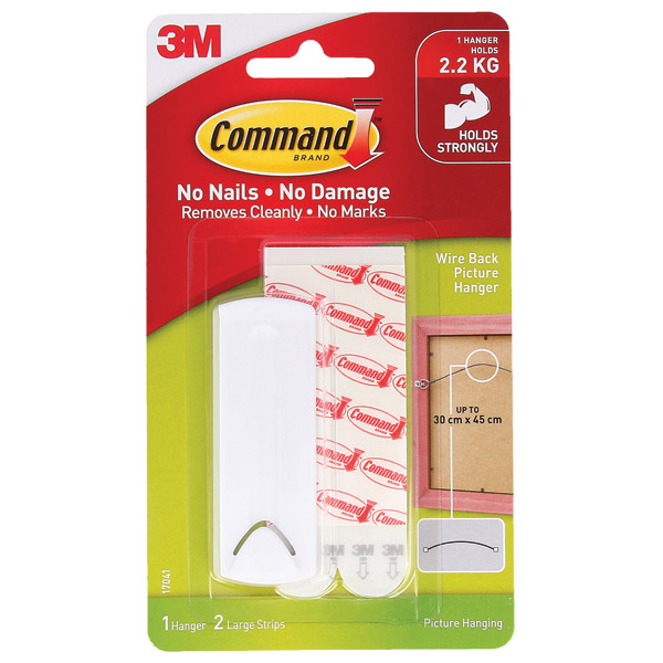 COMMAND ADHESIVE WIRE-BACKED PICTURE HANGER WHITE PACK 1 HANGER AND 2 STRIPS