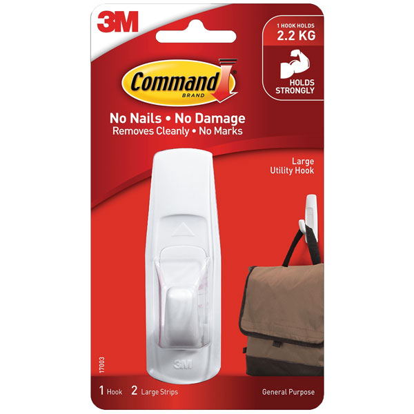 COMMAND LARGE HOOK AND TWO ADHESIVE STRIPS WHITE