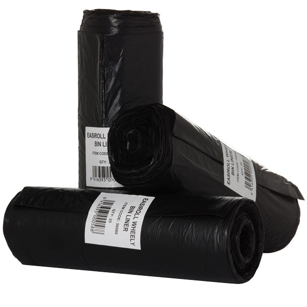COVERIS EASIROLL RUBBISH BAG WHEELY BIN LINER 240L W1150 X L1470MM BLACK ROLL 25