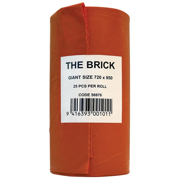COVERIS RUBBISH BAG BRICK 72L W720 X L950MM ORANGE ROLL 25