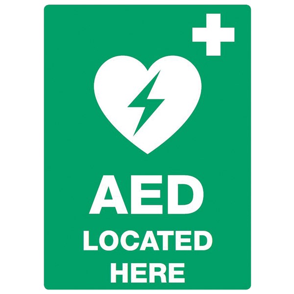 DEFIBRILLATOR LOCATED HERE SIGN A3