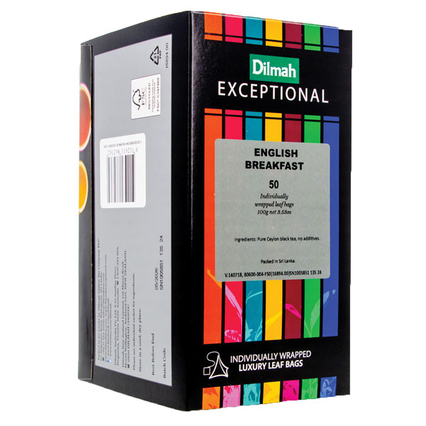DILMAH EXCEPTIONAL TEA BAGS ENGLISH BREAKFAST INDIVIDUALLY FOIL ENVELOPED BOX 50