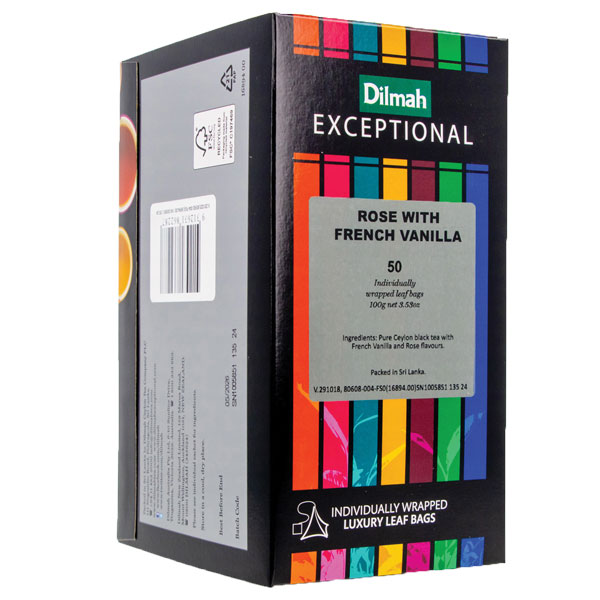DILMAH EXCEPTIONAL TEA BAGS ROSE WITH FRENCH VANILLA FOIL ENVELOPED BOX 50