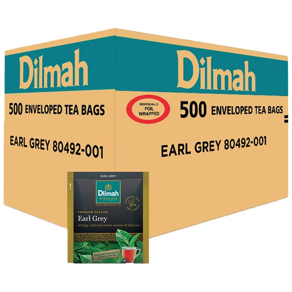 DILMAH TEA BAGS EARL GREY INDIVIDUALLY FOIL ENVELOPED BOX 500