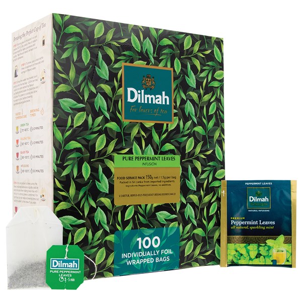 DILMAH TEA BAGS PEPPERMINT INFUSION INDIVIDUALLY FOIL ENVELOPED BOX 100