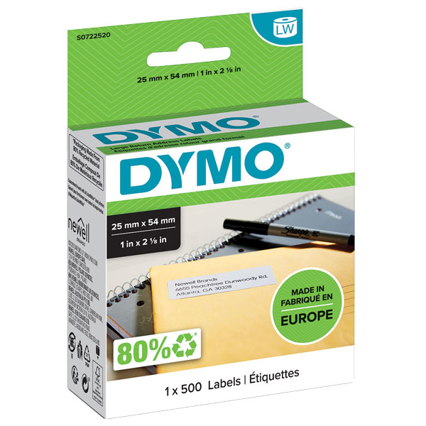 DYMO 11352 LW RETURN ADDRESS LABELS 25 X 54MM WHITE ROLL 500