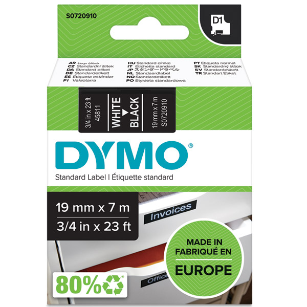DYMO 45811 D1 LABELLING TAPE 19MM X 7M WHITE ON BLACK