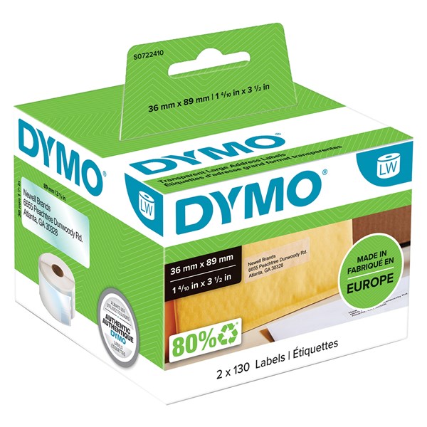 DYMO 99010 LW ADDRESS LABELS 89 X 28MM WHITE ROLL 130 BOX 2