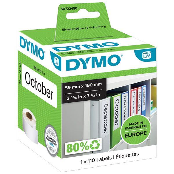 DYMO 99019 LW LEVER ARCH LABELS 59 X 190MM WHITE ROLL 100