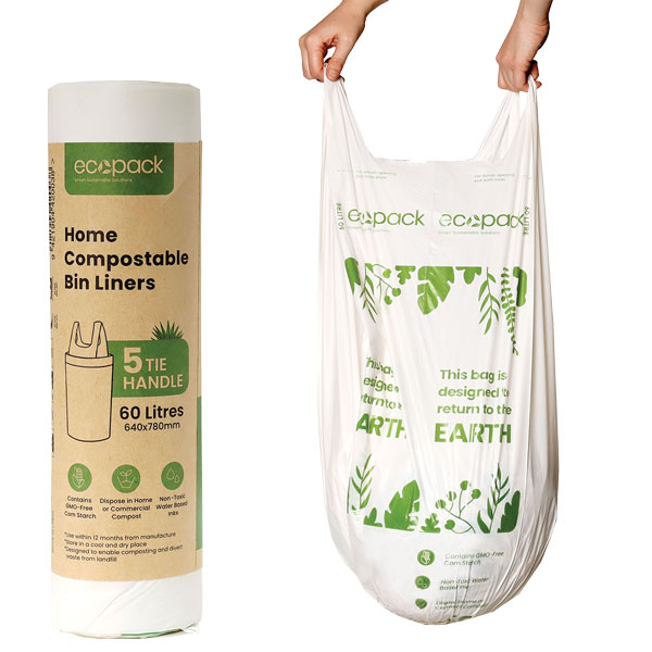 ECOPACK BIN LINERS COMPOSTABLE 60L ROLL 5