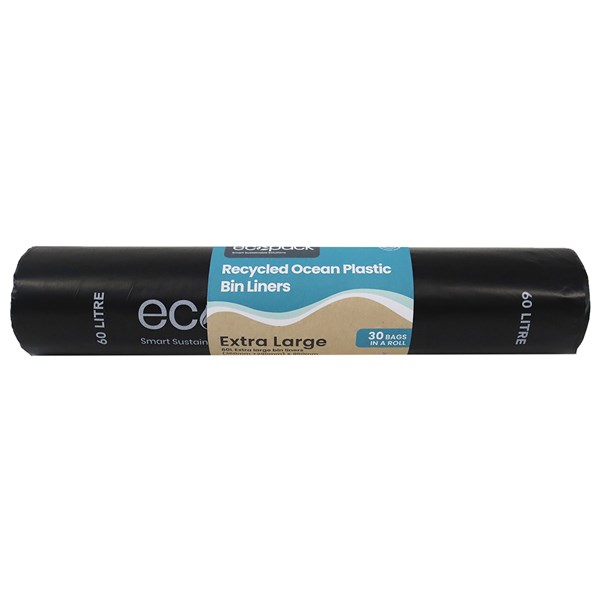 ECOPACK OCEAN PLASTIC BIN LINER BLACK 60L ROLL 30