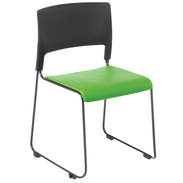 EDEN SLIM VISITOR CHAIR STACKABLE LINKABLE BLACK FRAME WITH GREEN VINYL SEAT