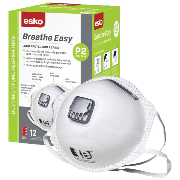 ESKO BREATHE EASY P2 VALVED RESPIRATOR MASK BOX 12