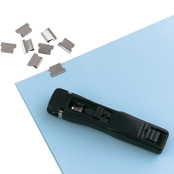 The Esselte Nalclip system of fastening holds papers together without the need to punch holes in the paper
