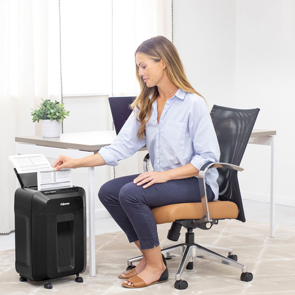 90-sheet auto feed and 9-sheet manual feed shredding capacity.