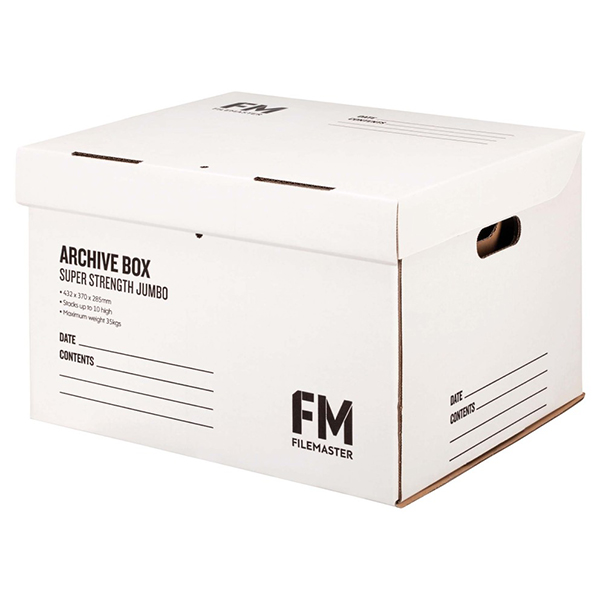 FM ARCHIVE BOX JUMBO SUPER STRENGTH W432 X H286 X D370MM WHITE