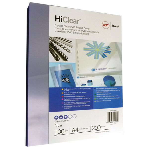 GBC IBICO BINDING COVER 200 MICRON A4 CLEAR PACK 100