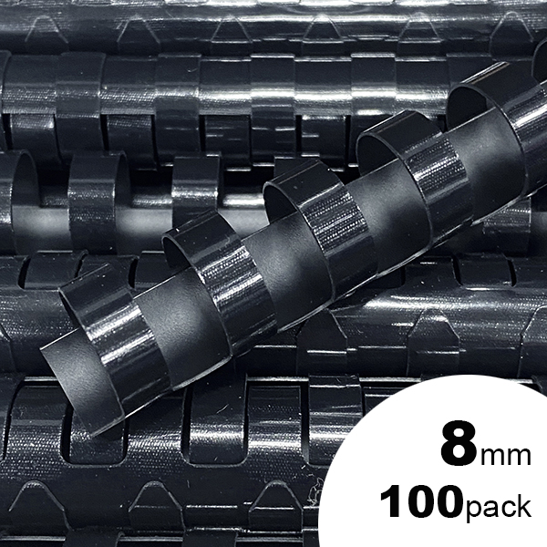 GBC PLASTIC BINDING COMB ROUND 21 LOOP 8MM A4 BLACK PACK 100