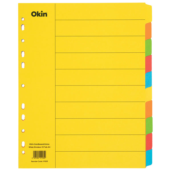 OKIN CARDBOARD DIVIDERS 10 TAB A4 COLOURED