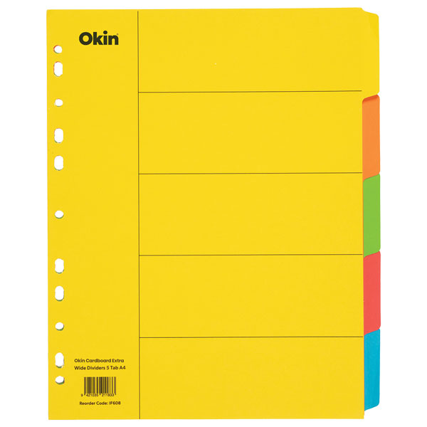 OKIN CARDBOARD DIVIDERS 5 TAB A4 WHITE