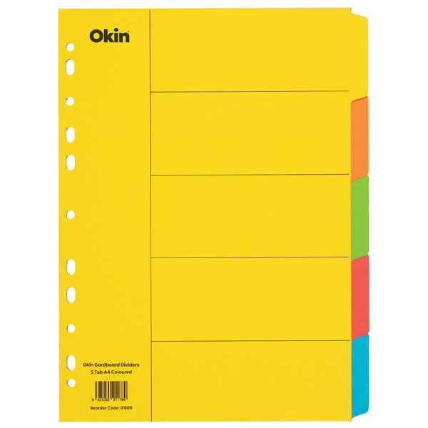 OKIN CARDBOARD DIVIDERS 5 TAB A4 WHITE